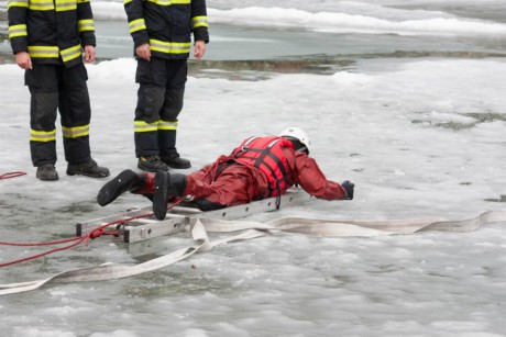 Nácvik záchrany osob ze zamrzlých ploch Harasov